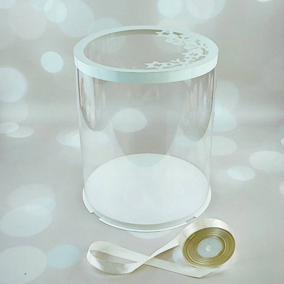 Runde transparente Box D250, h300 mm,weiße, Schneeflocke